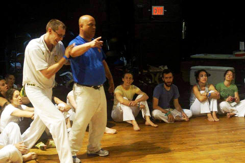 Classes include stretching, warm-up, training in capoeira movements, traditional rules and philosophy, music, singing and playing in a group roda.